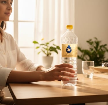 In a market where brands like Bisleri, Aquafina, Kinley, and Evian dominate shelf space, Nivhaa competes confidently by delivering comparable mineral water quality with strong local supply support. What truly makes our 1L bottle stand out is the distinctive yellow label. While most packaged drinking water brands use blue designs, our yellow label shines brightly on shelves, instantly catching customer attention.